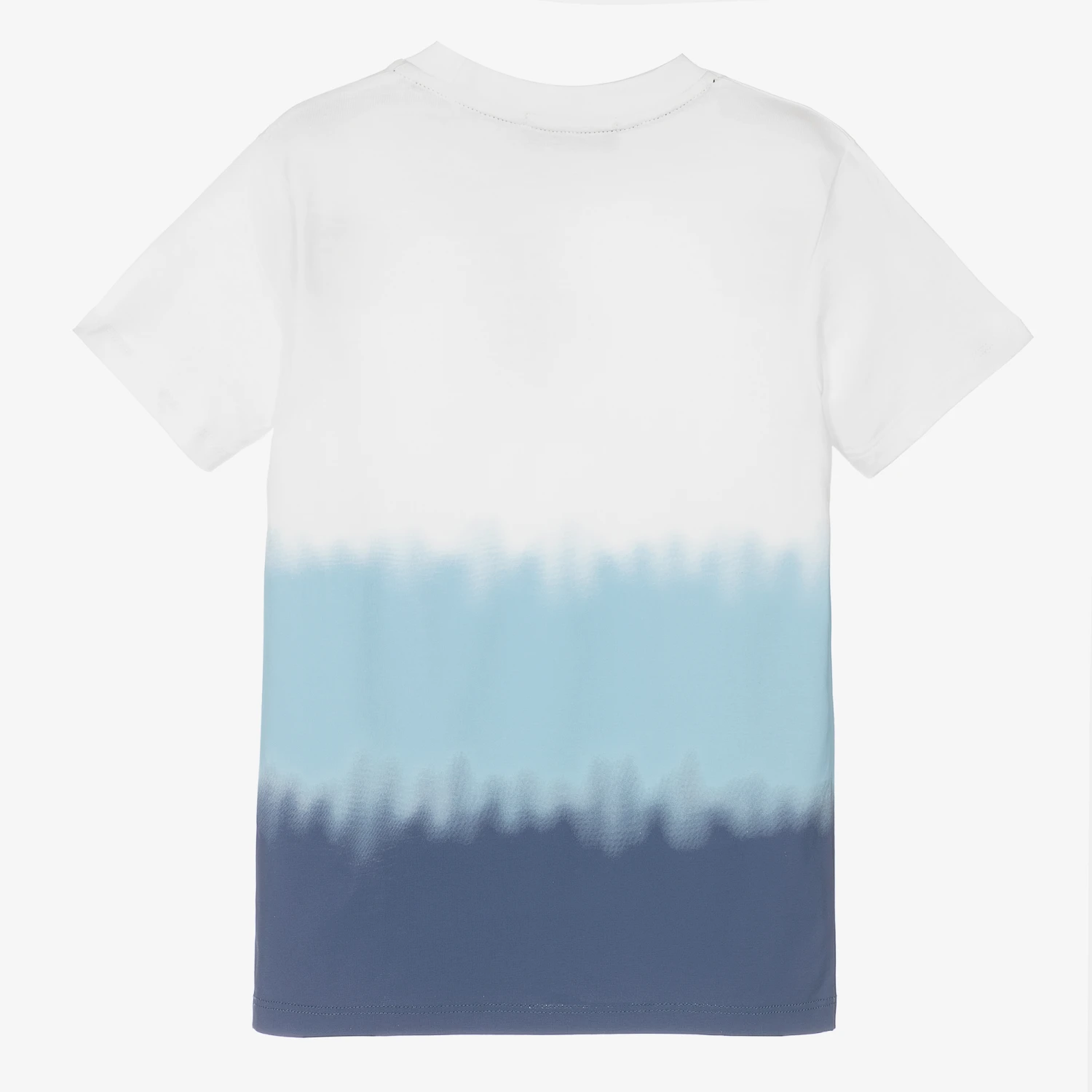 White and blue T-shirt for boys by German designer AIGNER. Made in soft and stretchy jersey cotton, this breathable top features an ombré design and the brands signature ‘A’ horseshoe logo print.