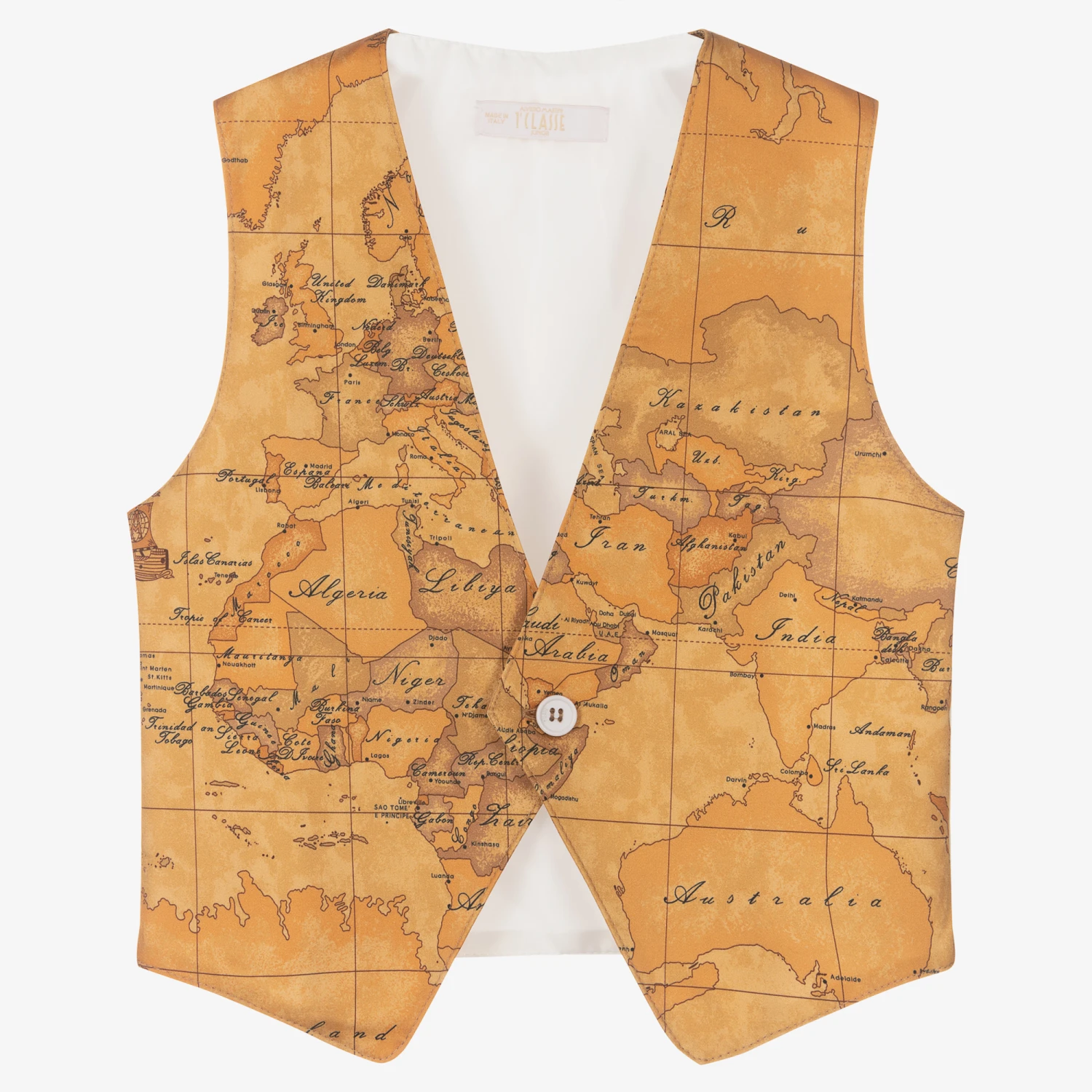 Alviero Martini Boys Beige Geo Map Waistcoat