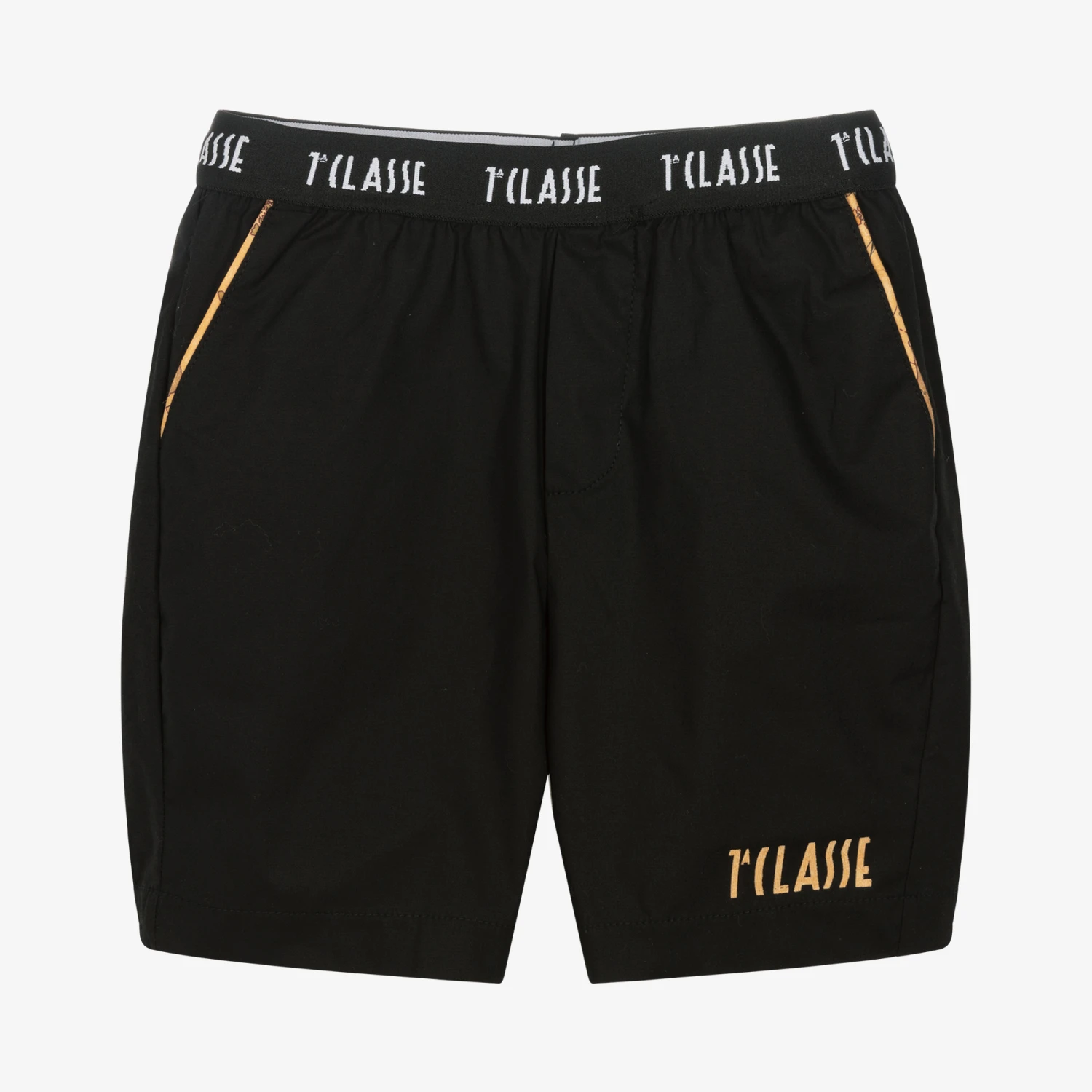 Lightweight shorts for boys by Alviero Martini, made in soft cotton. with a slight stretch. They have slanted front pockets trimmed with the brand’s signature dark beige Geo map print and a dark beige 1a Classe logo on one leg. Comfortable to wear, they have an elasticated waistband, with white jacquard 1a Classe logos, for a comfortable fit.