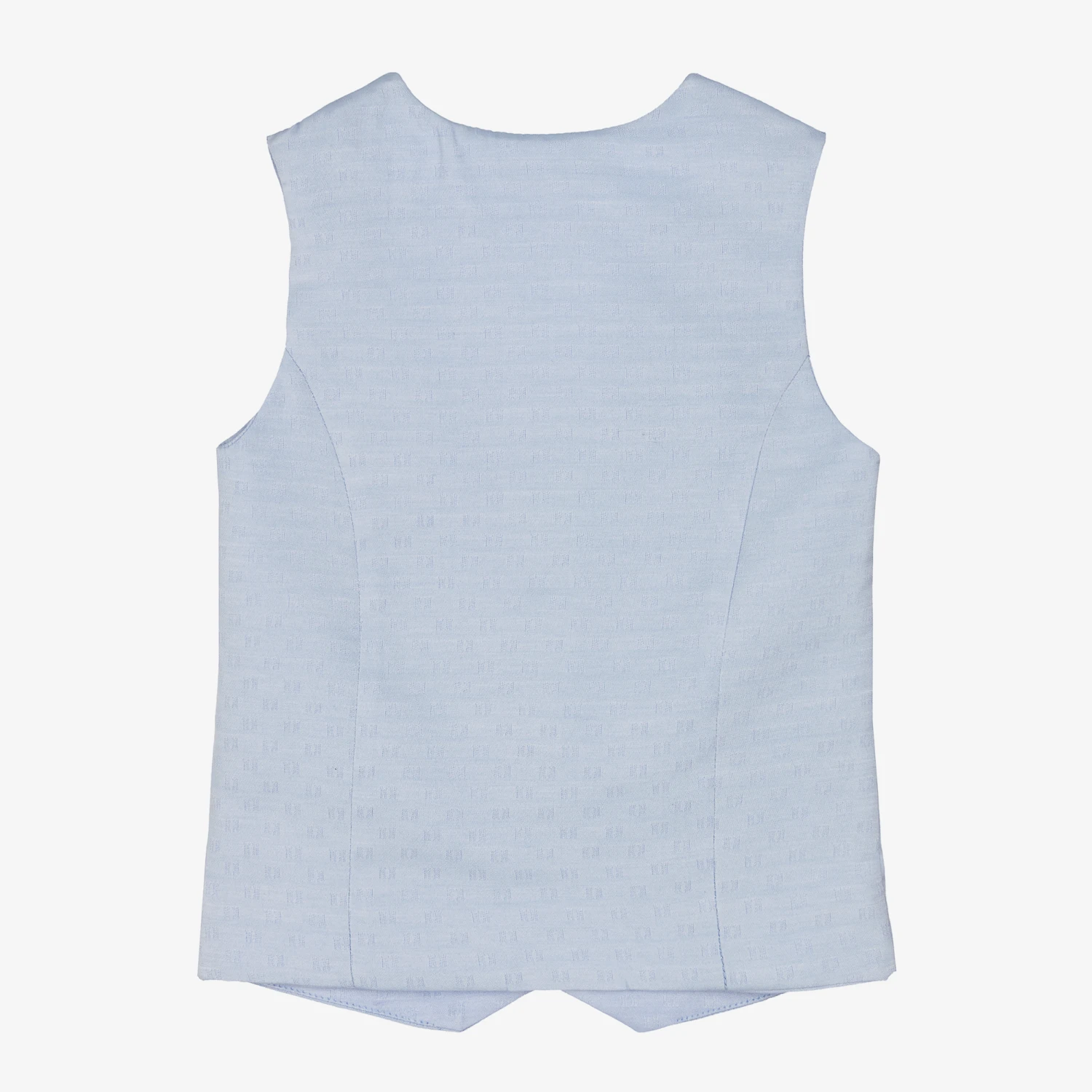 A pale blue waistcoat for little boys by Alviero Martini, woven in a luxuriously soft cotton blend. Smart for layering, this waistcoat is patterned with a interwoven monogram design all-over, for subtle designer sophistication. There are decorative pockets and shiny pearlescent button fastenings, intricately embossed with the brand’s signature 1a Classe logo.