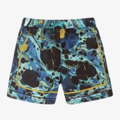 Boys ice blue swim shorts from Calvin Klein. For instant brand recognition, white and blue embroidered logo tape runs along the sides from the elasticated waist to the hem. Silky-soft and woven in water-repellent and quick-drying fabric, these lightweight shorts are made with recycled materials. They have a branded drawstring on the waist for a good fit, side pockets and a soft and comfortable mesh lining.