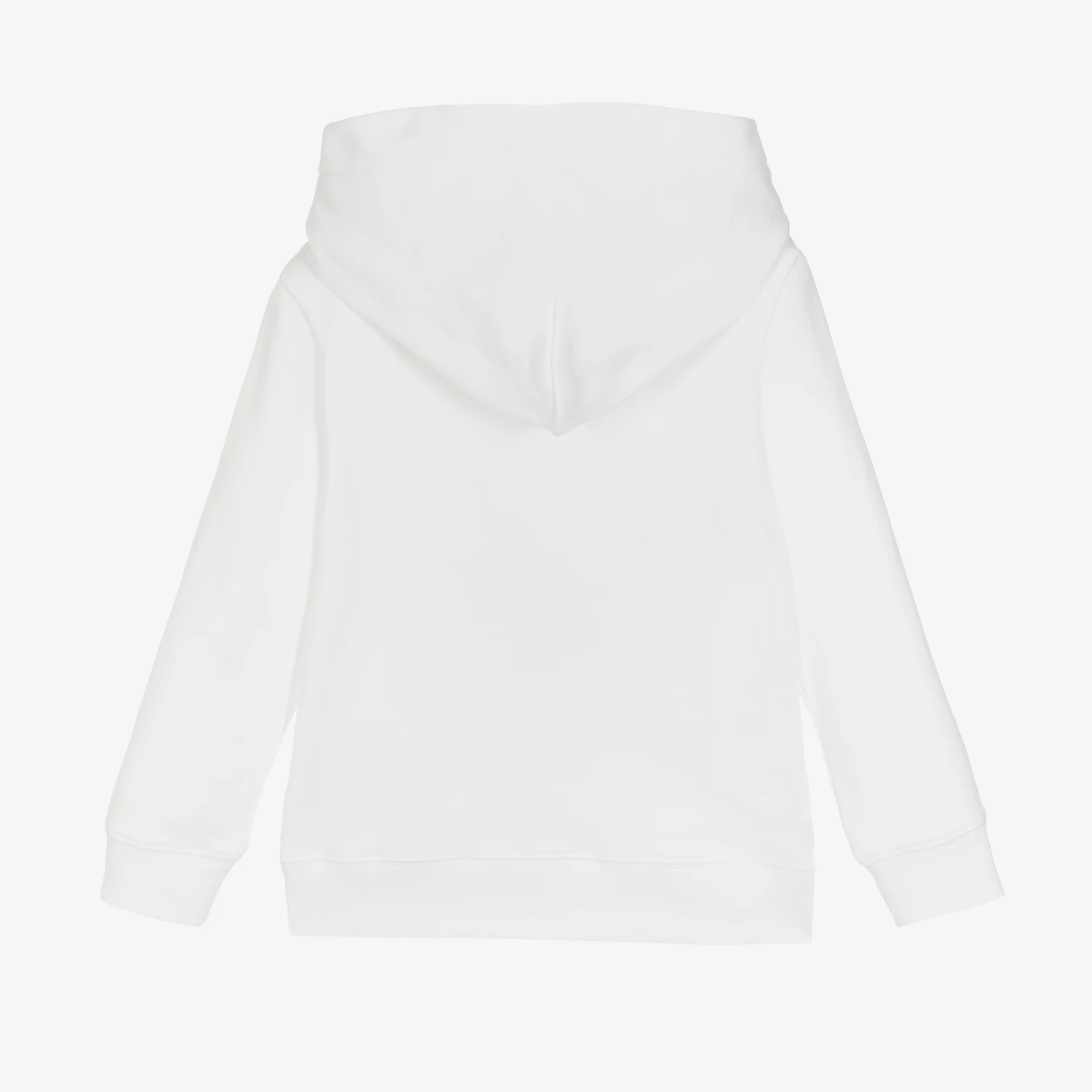 White hoodie by Calvin Klein Jeans, made in mid-weight sweatshirt jersey. Suitable for boys, the front features a graphic placement logo and an embroidered logo patch at the hip.
