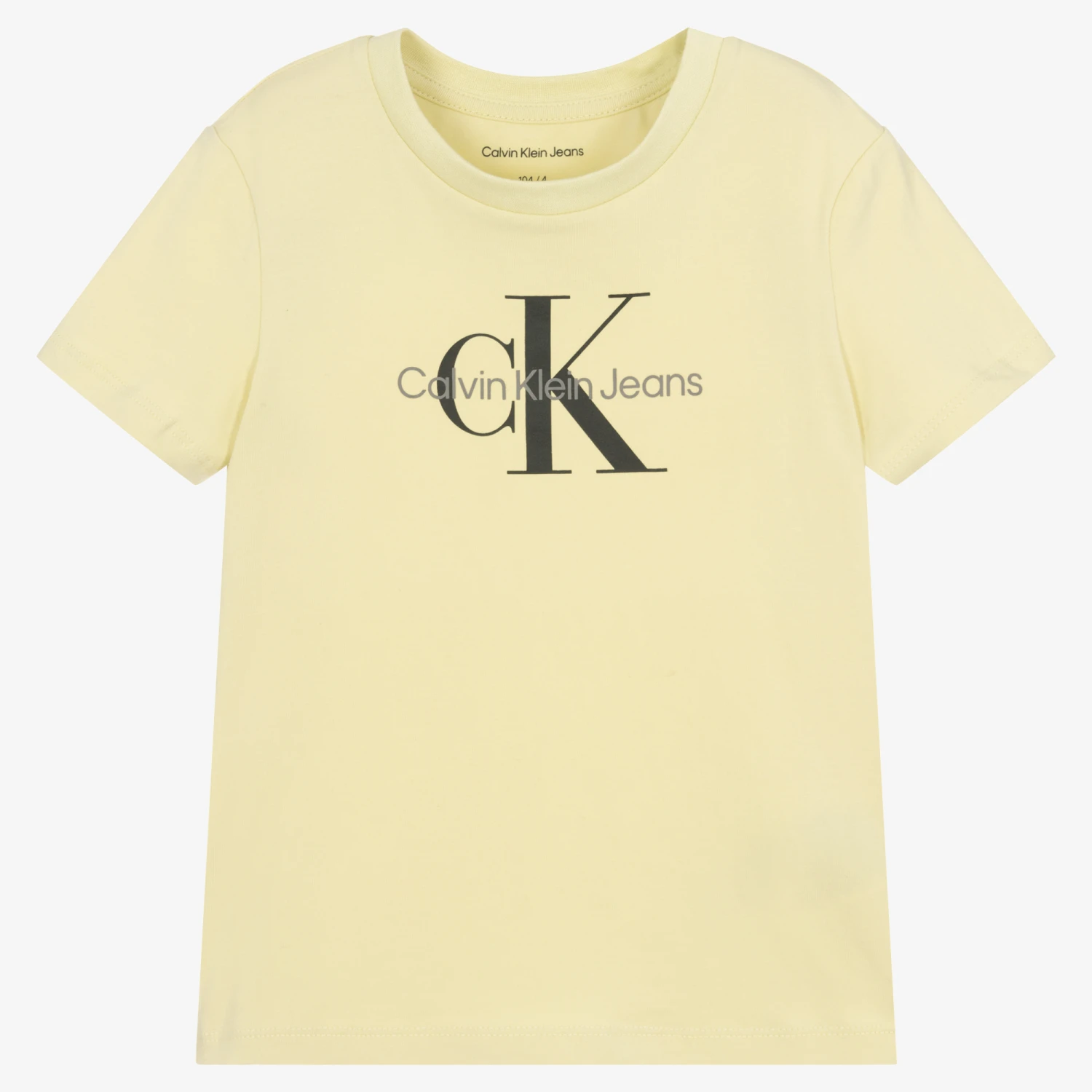 Pale green cotton T-shirt for little boys and girls by American brand Calvin Klein Jeans. Just right for relaxed days, it is made in comfortable jersey, with a black and grey logo on the front. The main material of this product is made of at least 50% transitional cotton.