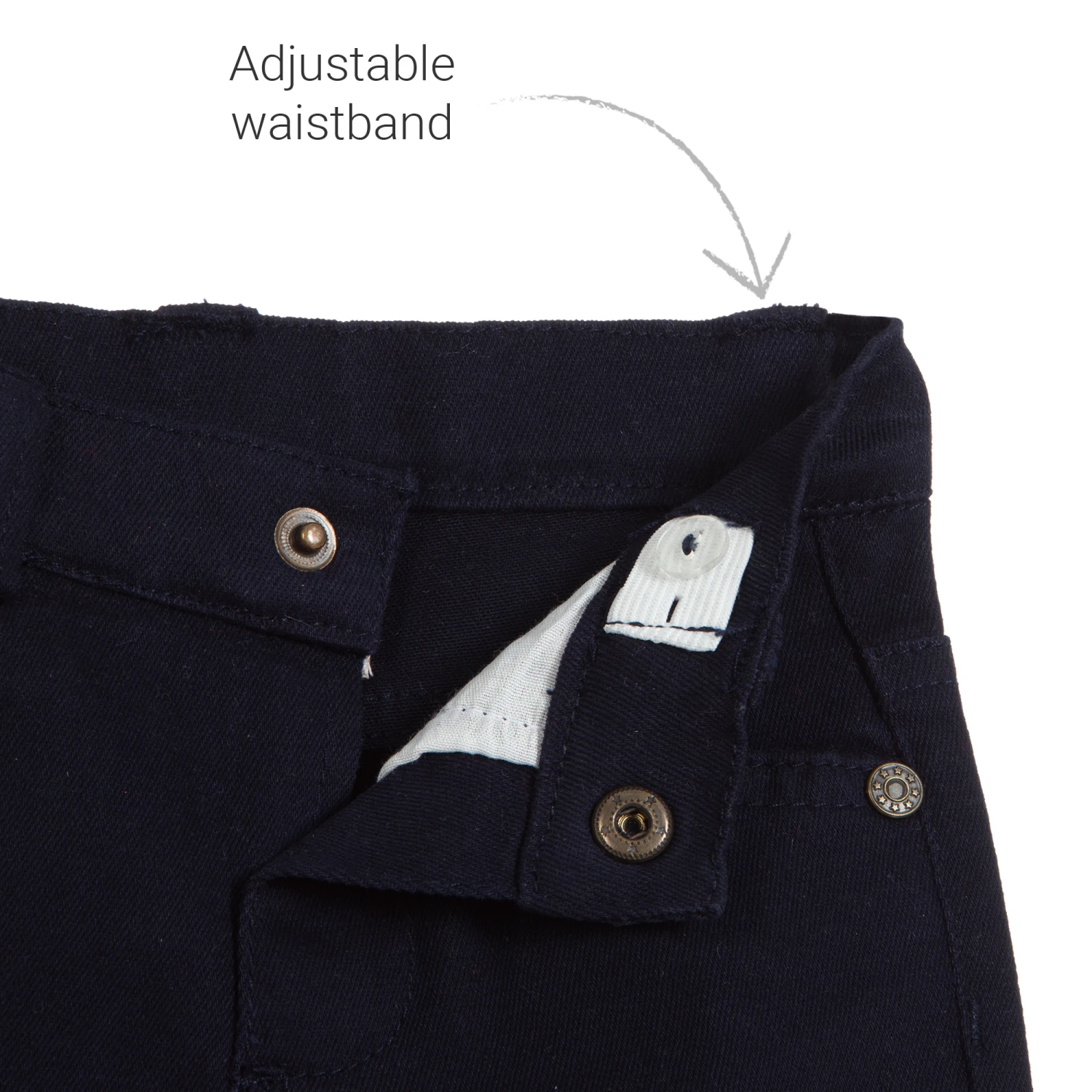 - Trousers: 98% cotton, 2% elastane (soft & stretchy twill)