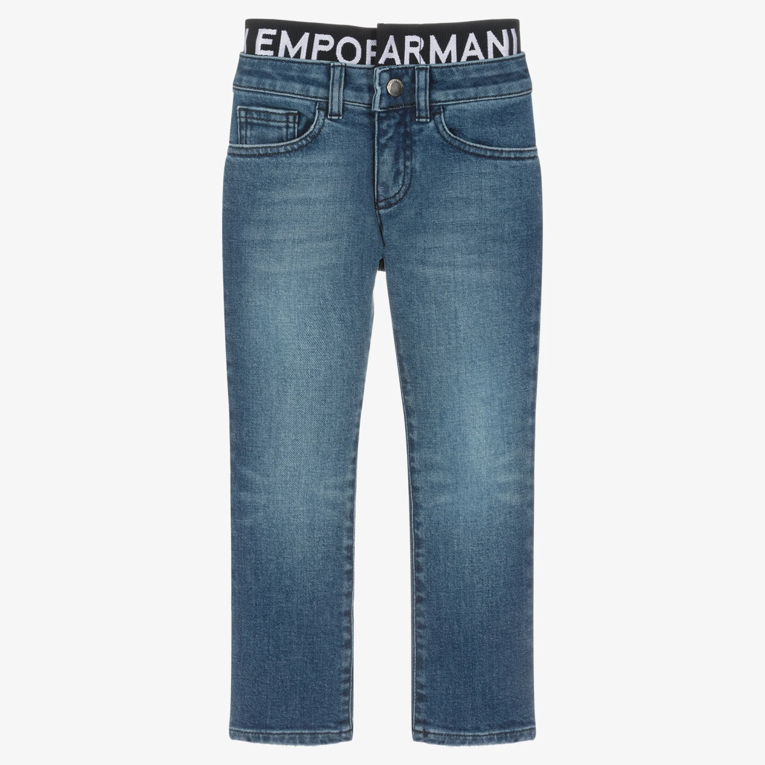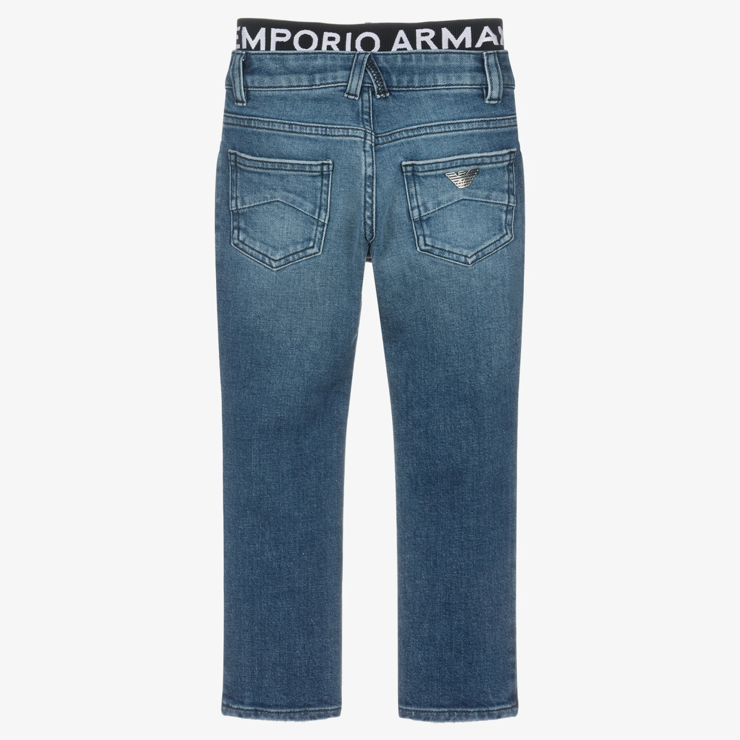 Emporio Armani Boys Blue Denim Logo Waist Insert Jeans