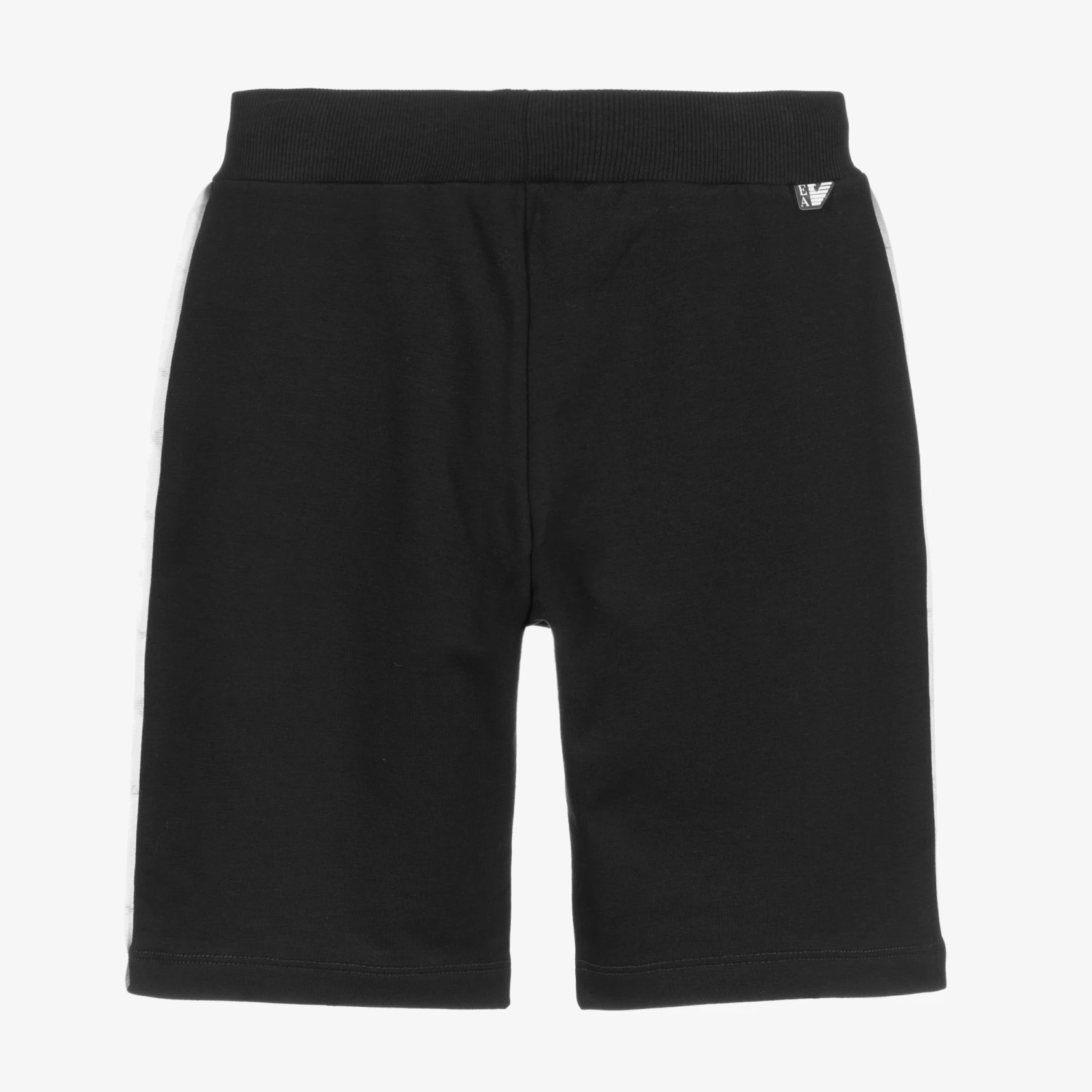 Boys casual navy blue shorts by Emporio Armani. Made from soft cotton jersey, they have a white logo tape down each leg.