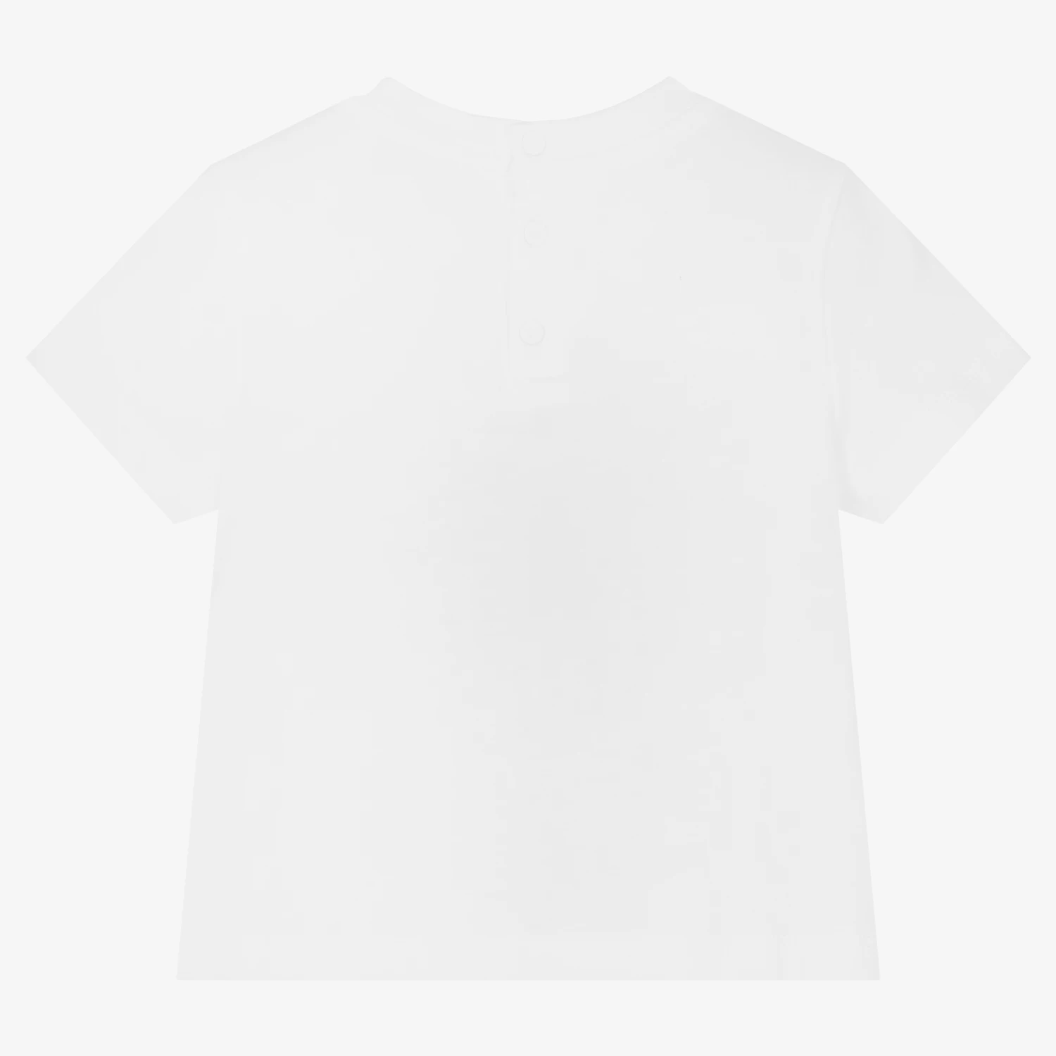 White cotton T-shirt for little boys from Emporio Armani, made in soft and comfortable jersey. It has a fun red and yellow French fries print, incorporating the brand’s signature logos. Branded popper fastenings on the back allow it to fit easily over little ones’ heads. The top is made partially from recycled and organic fibres.