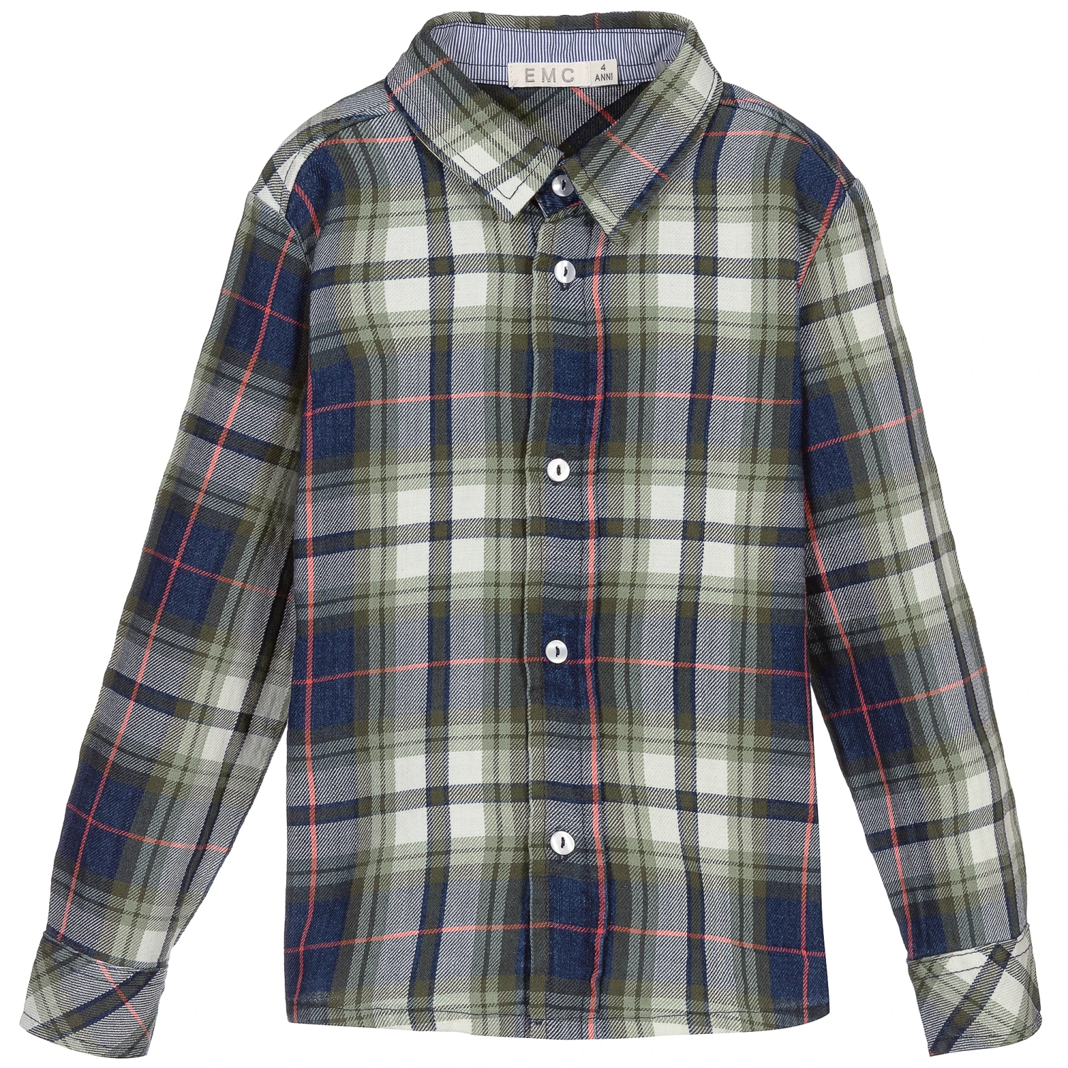 Green and blue check shirt for boys by Everything Must Change, made in soft cotton.