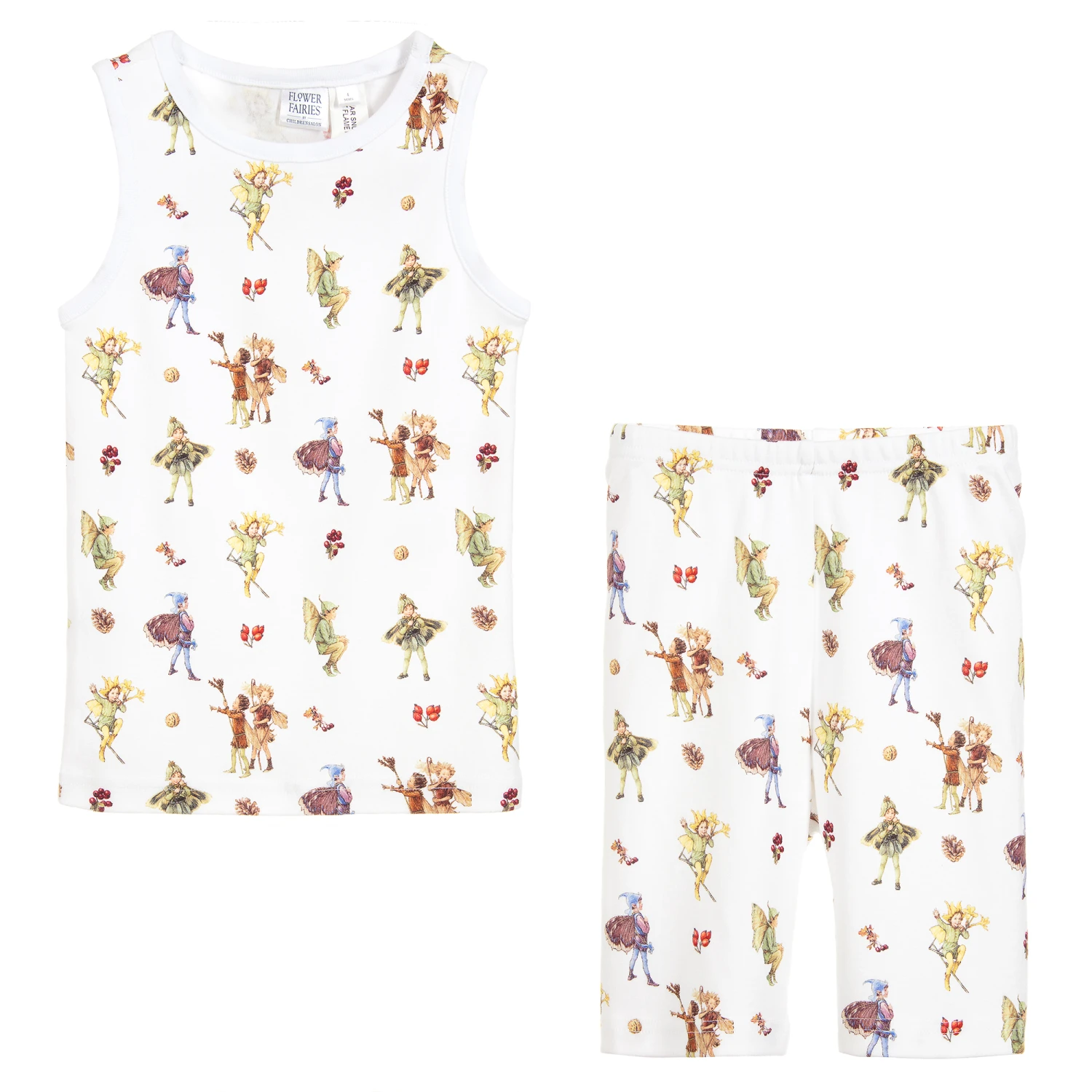 Flower Fairies™ by Childrensalon short pyjamas for boys and girls. They are made in super soft cotton jersey, with the iconic Flower Fairies print from the original illustrations by Cicely Mary Barker.