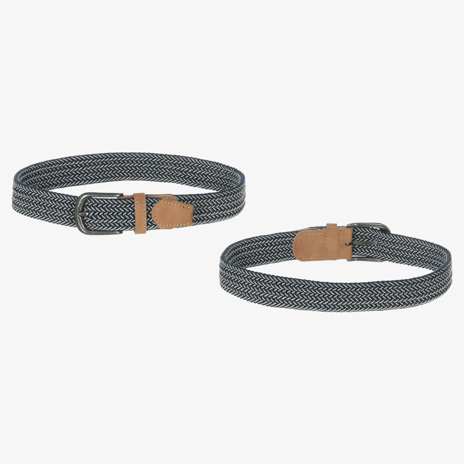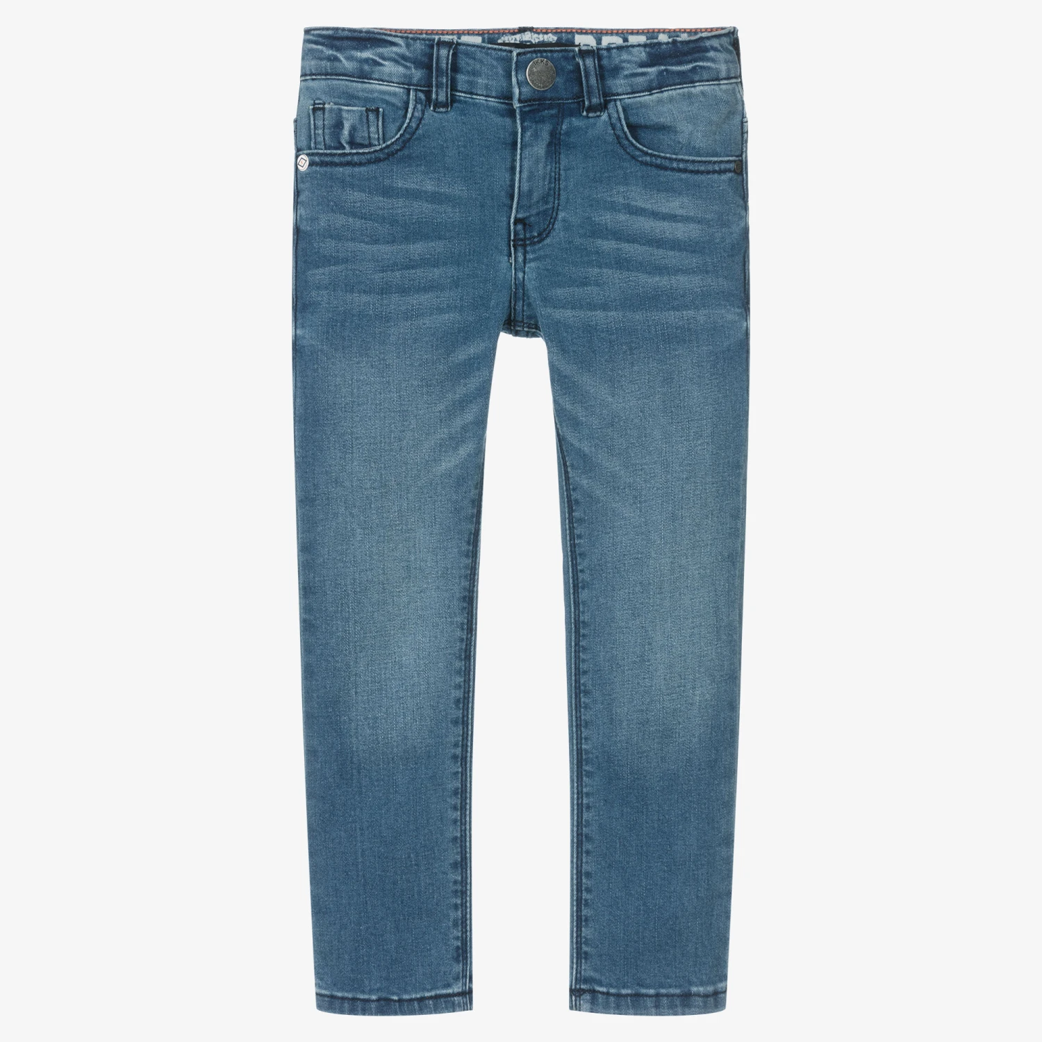 A classic pair of blue jeans for boys by French brand IKKS, made in a soft and stretchy cotton denim. They have five-pocket styling, a zip and hook fastening, and logo detailing on the front and back. There is an adjustable waistband and a removable braided belt, ideal for the best fit while remaining stylish.