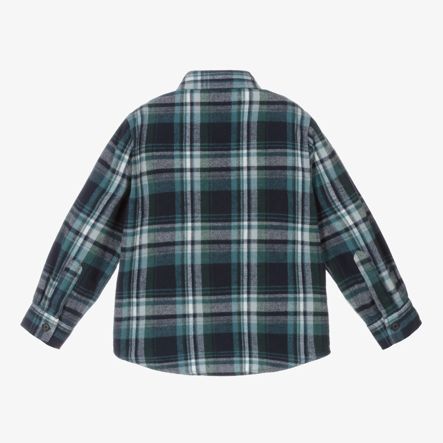 In navy blue, green and white, this classic checked shirt for boys is by luxury Italian brand, Il Gufo. Made in super soft cotton flannel, it has a patch pocket on the chest and fastens with buttons down the front.