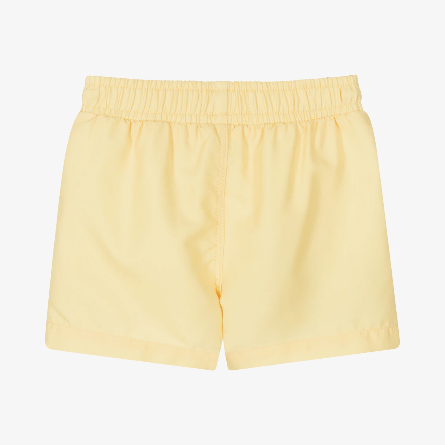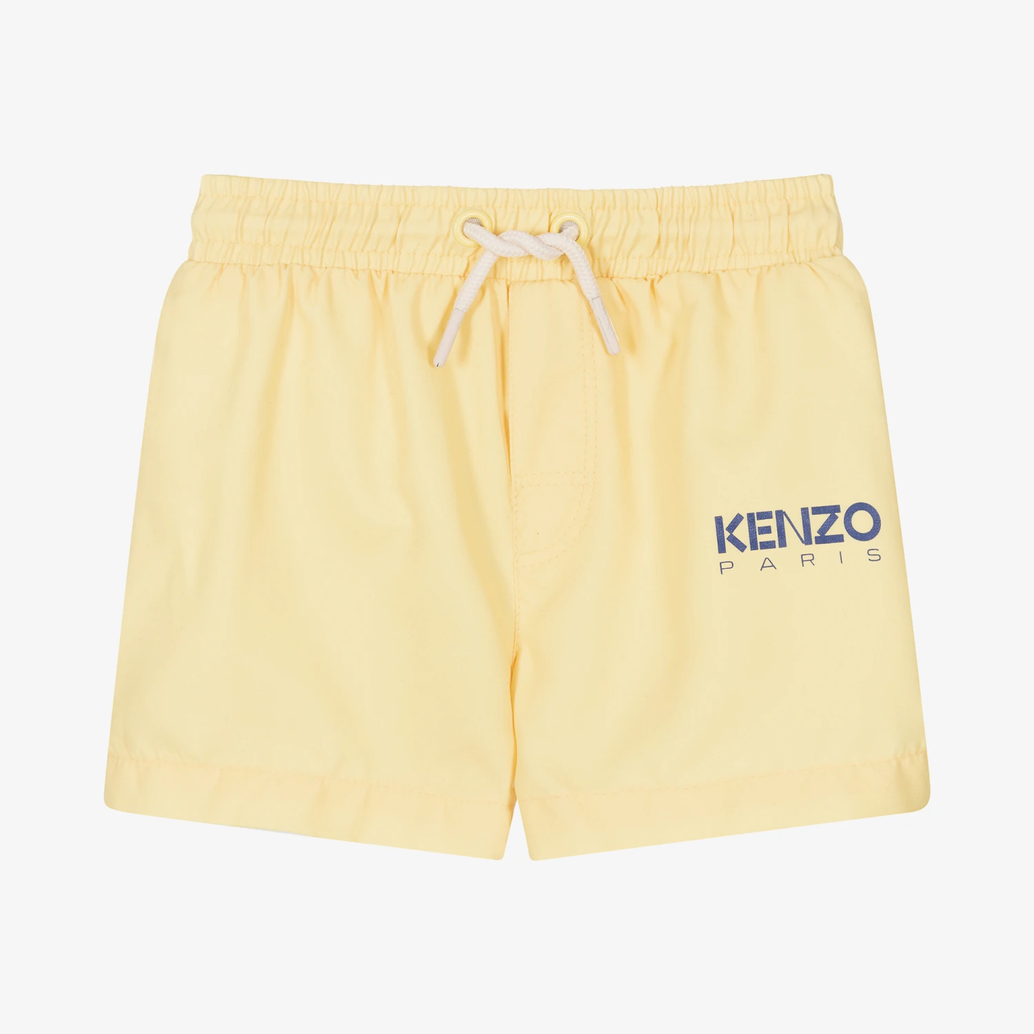 Yellow swim shorts for little boys by KENZO KIDS. Super soft and smooth, they have a mesh lining and a drawstring elasticated waist. There is a navy blue logo print on the front of one leg.