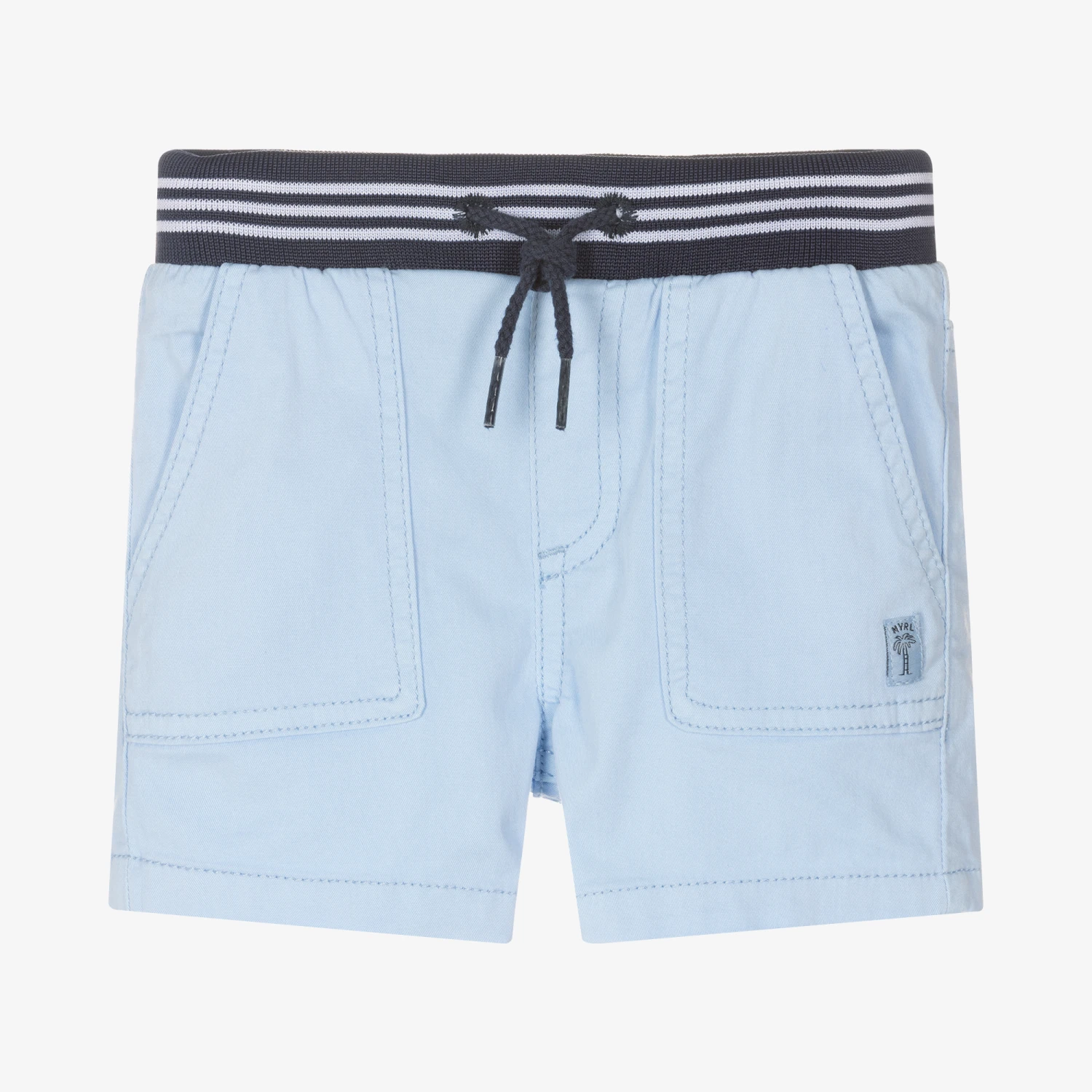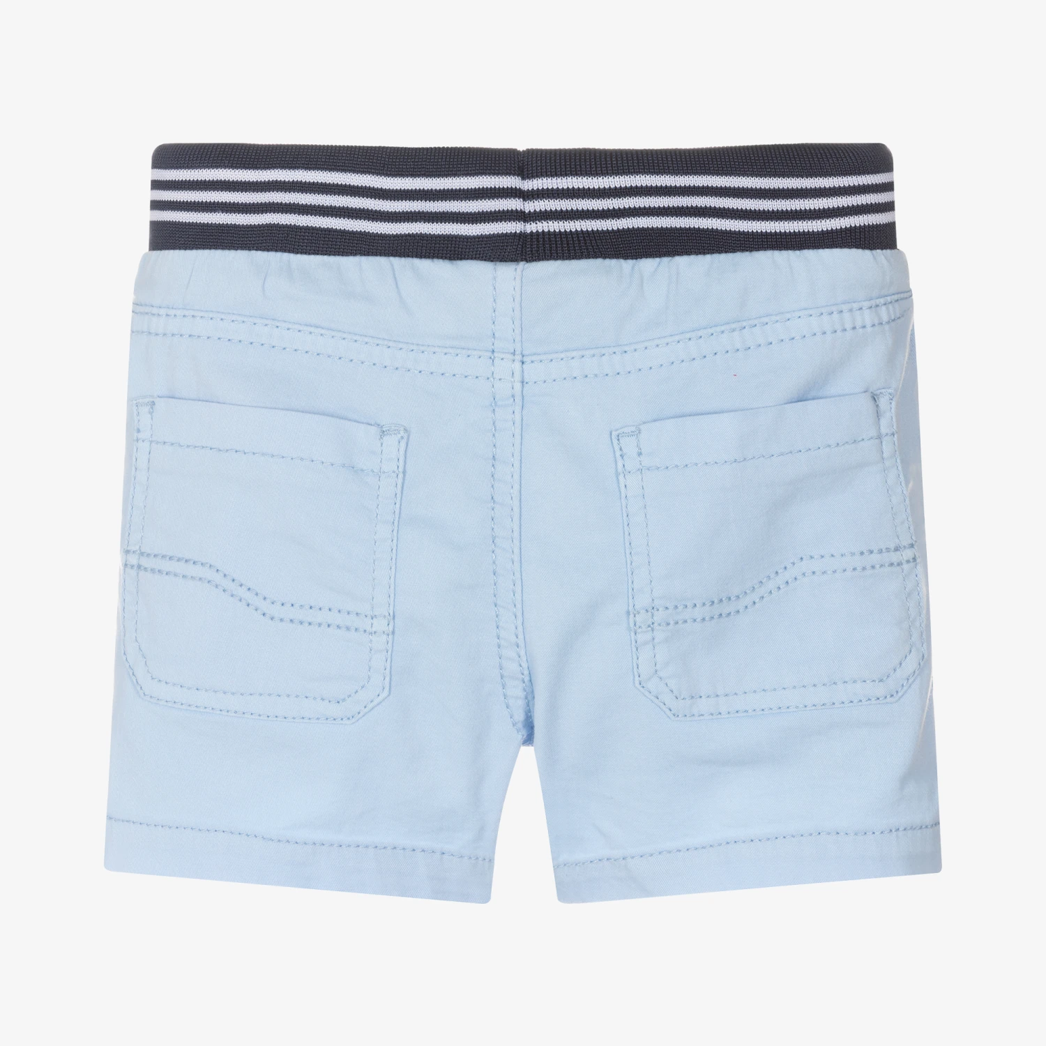 Cool and casual blue shorts for little boys by Spanish brand Mayoral. Made in soft, sustainable cotton twill with a slight stretch for comfort, they have an elasticated drawstring waistband and pockets on both sides.
