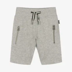 From Danish brand Molo, grey marl shorts for boys made in a soft cotton blend jersey. They have zip fastening front pockets for an alternative finish and an adjustable drawstring waist for a better fit, making them cool and comfortable.