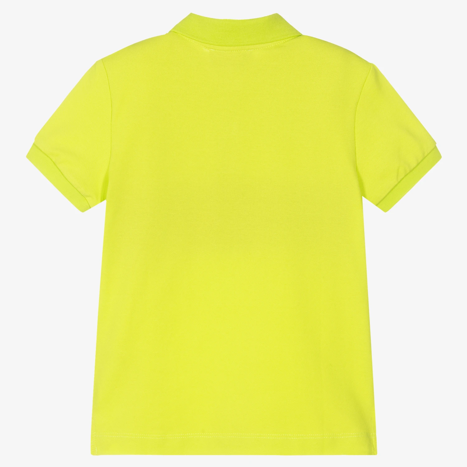 Bright green polo shirt for boys by Moschino Kid-Teen. Made with soft and stretchy cotton piqué, this top is printed with the designer’s logo in white on the black front panel. It fastens with branded buttons on the front.