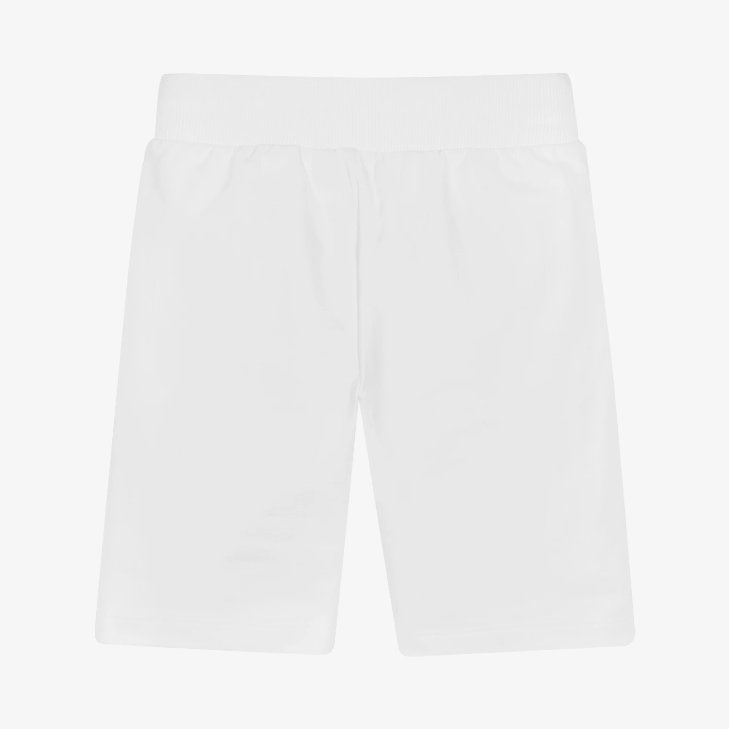 White shorts for boys by Moschino Kid-Teen, with a bold logo print on the leg. Great for days spent lounging, these cotton jersey shorts have pockets and an adjustable drawstring waist.