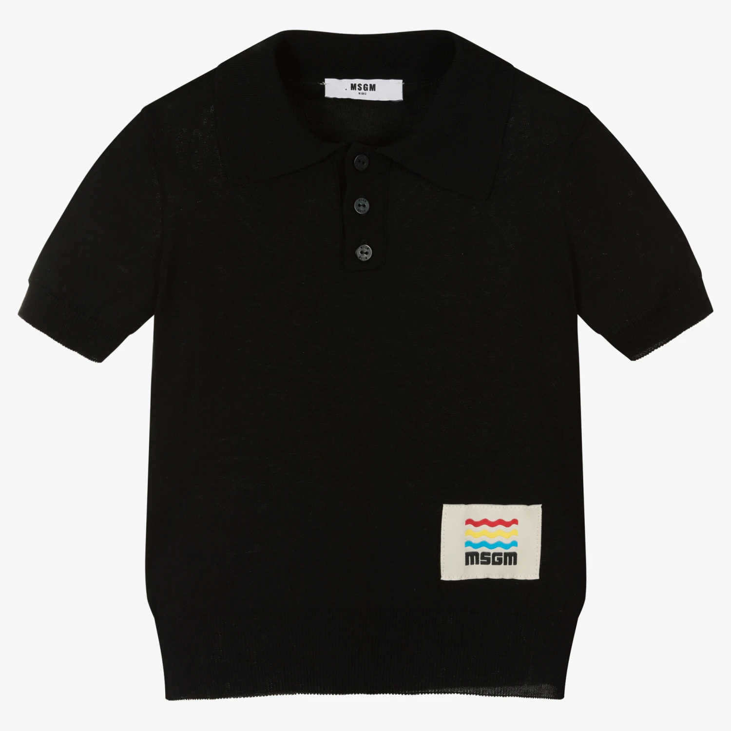 Black polo shirt for boys from MSGM. Knitted in soft cotton, it has a logo patch on the front and branded buttons.