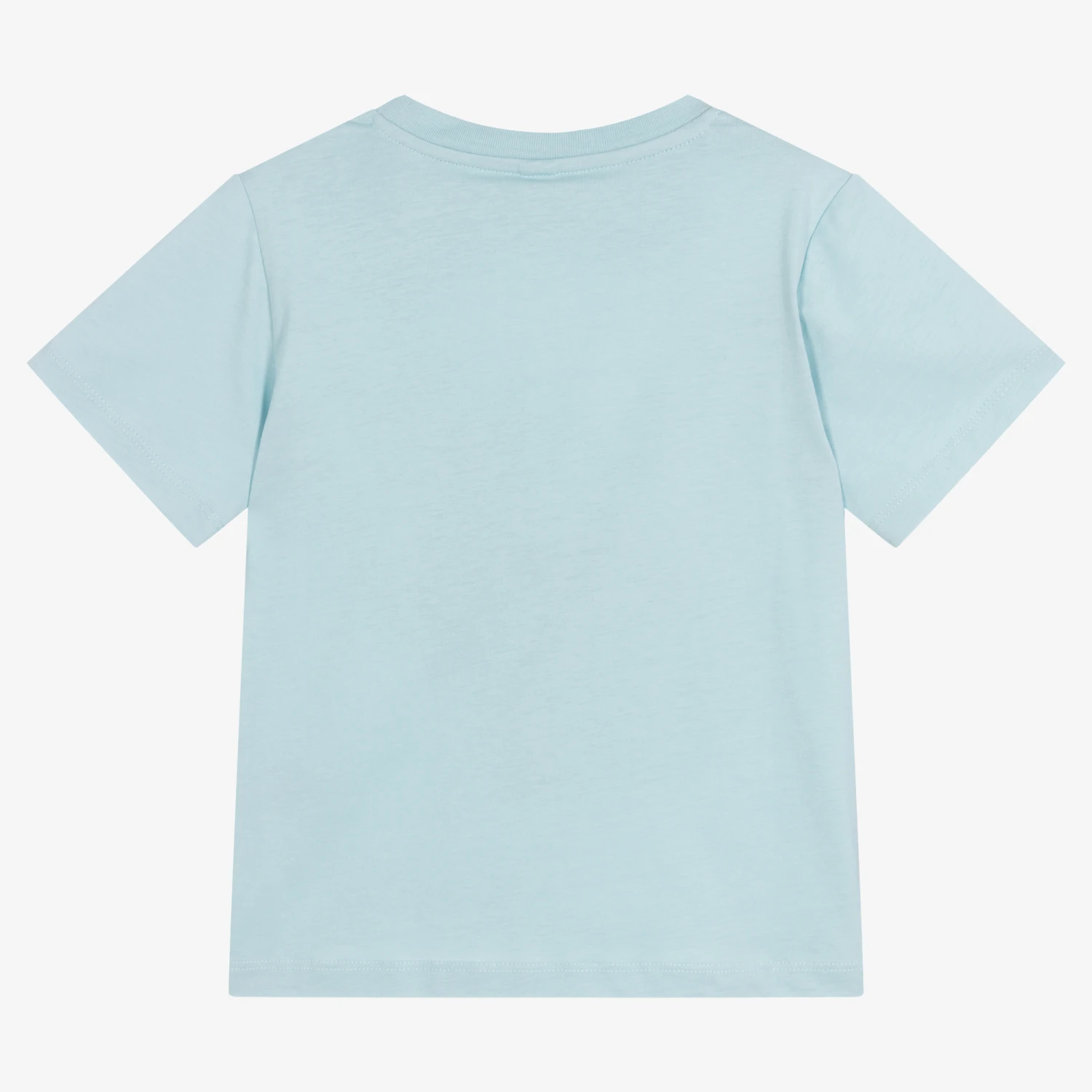 Fun blue T-shirt for boys by Stella McCartney Kids, made in soft organic cotton jersey. The front is printed with a playful guitar motif, in a quirky colourful style. The Stella McCartney fit can be quite small so choose a size up if you want room to grow.