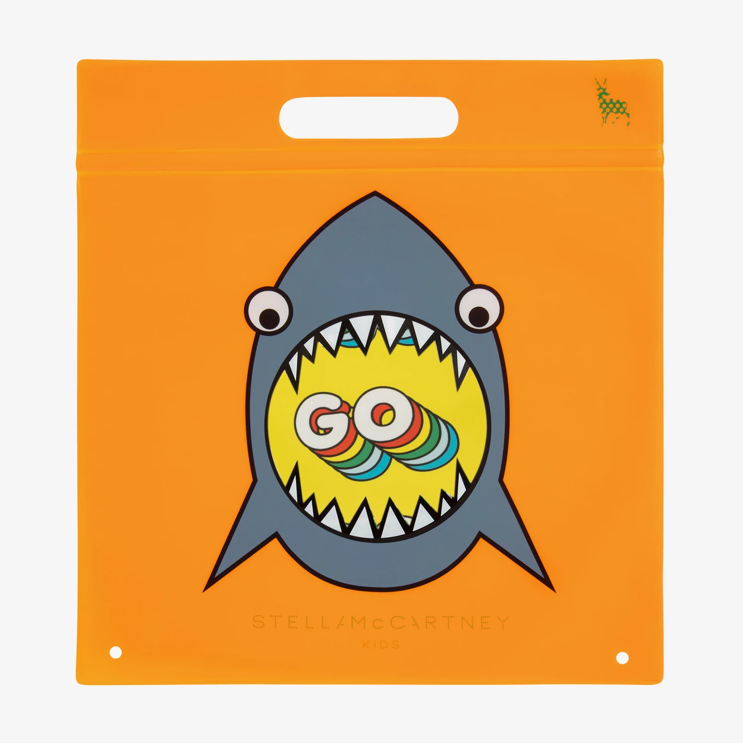Bright yellow swim shorts for boys by British brand Stella McCartney Kids, with ‘GO’ printed in rainbow-coloured lettering. Silky smooth and vibrant, they are made from recycled fabric with a soft and comfortable mesh lining. Come with a branded storage pouch, they have an elasticated waistband with a blue tie string, two pockets on the front and a velcro-fastening back pocket.