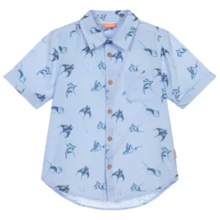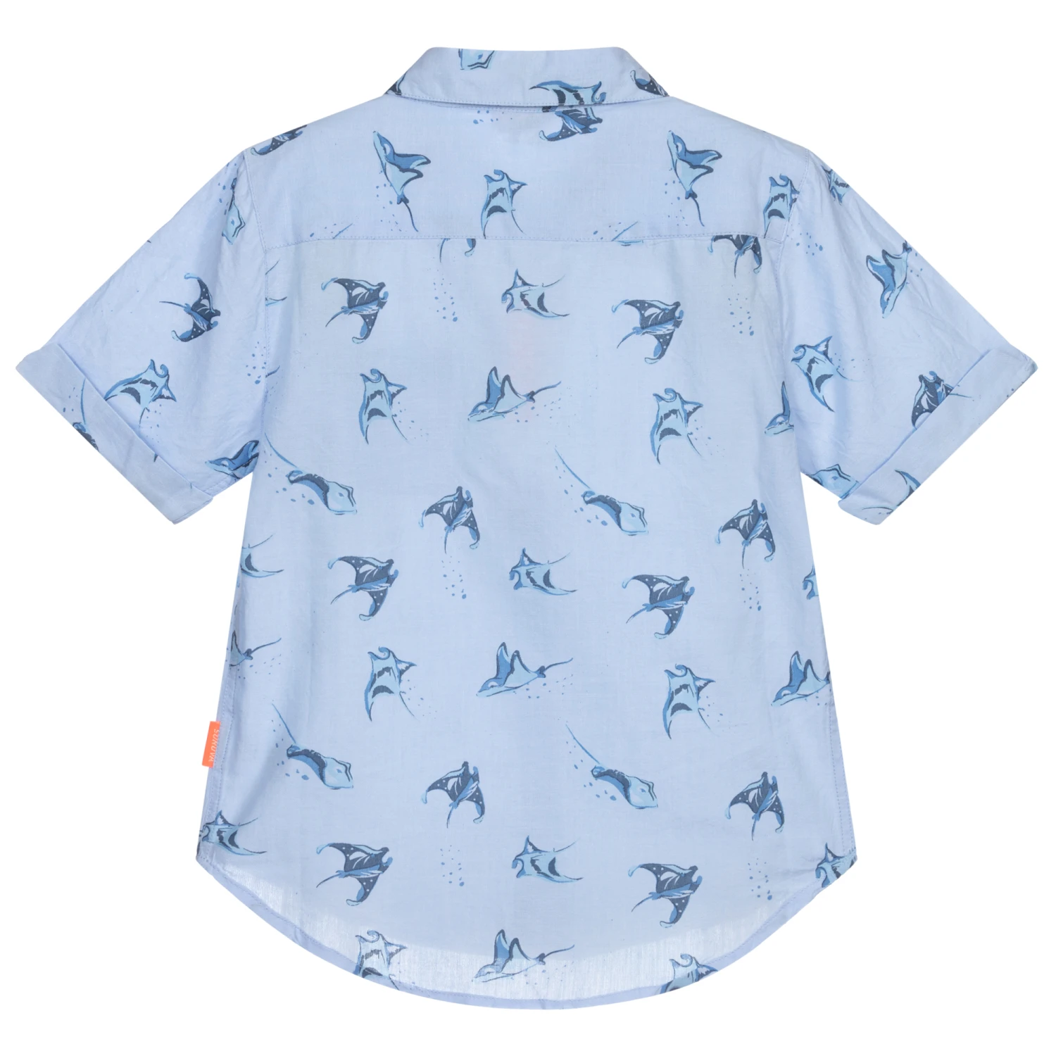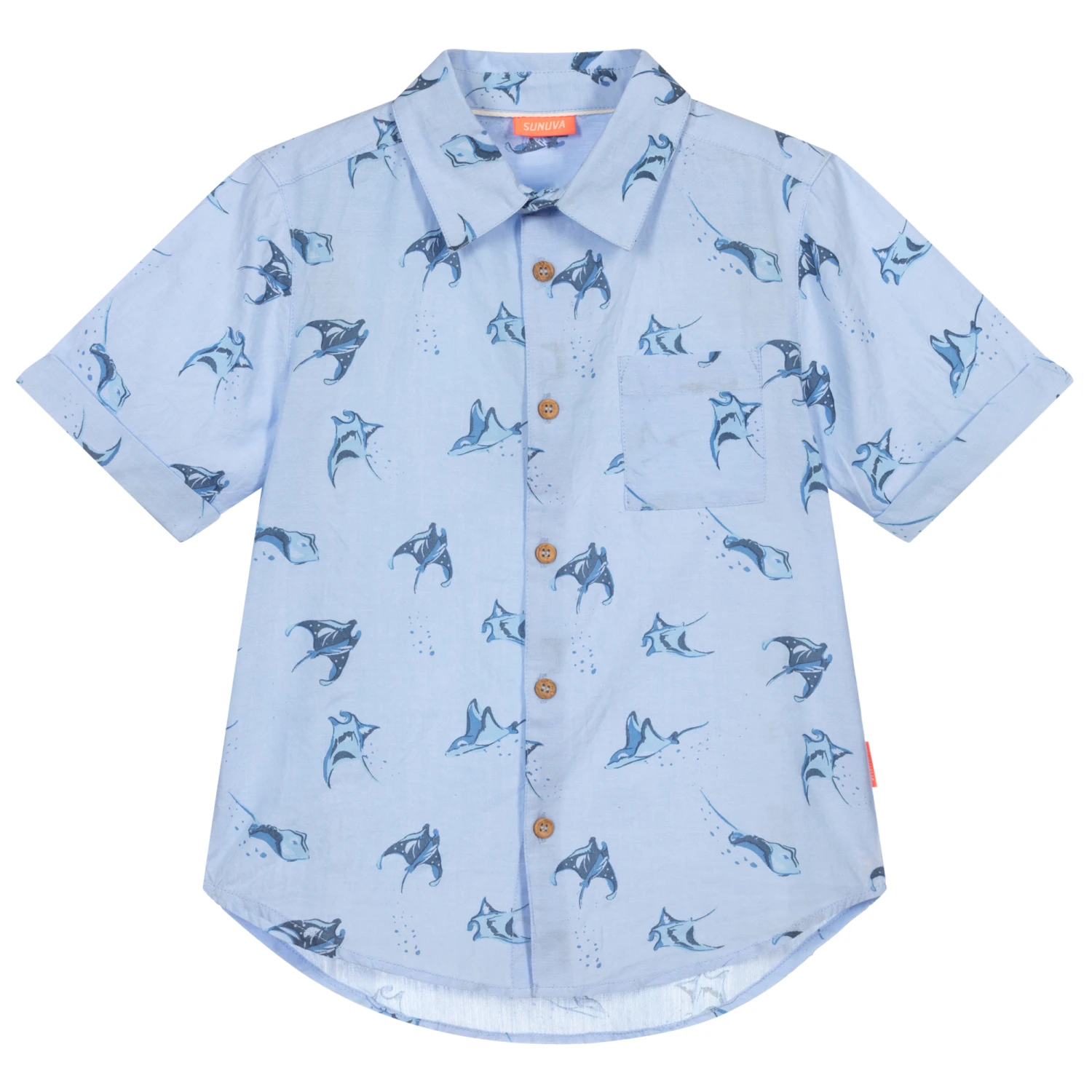 Boys blue shirt by Sunuva, made in soft and lightweight cotton with a mantaray print.