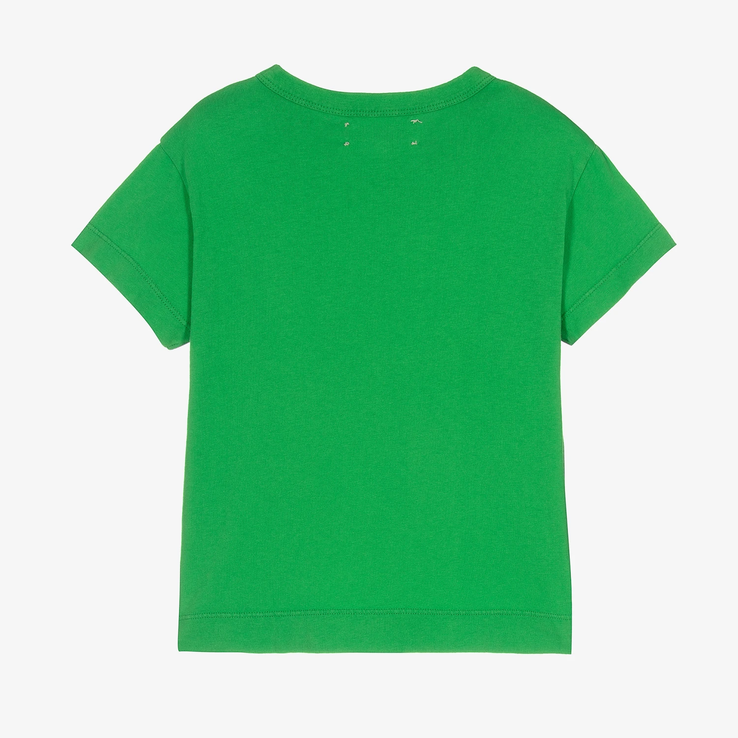 Bright green T-shirt for boys and girls by The Animals Observatory, made in soft, lightweight cotton jersey. Cool and comfortable, in a relaxed fit, it has ‘Istituto Allegro’ printed on the front in bright colours.