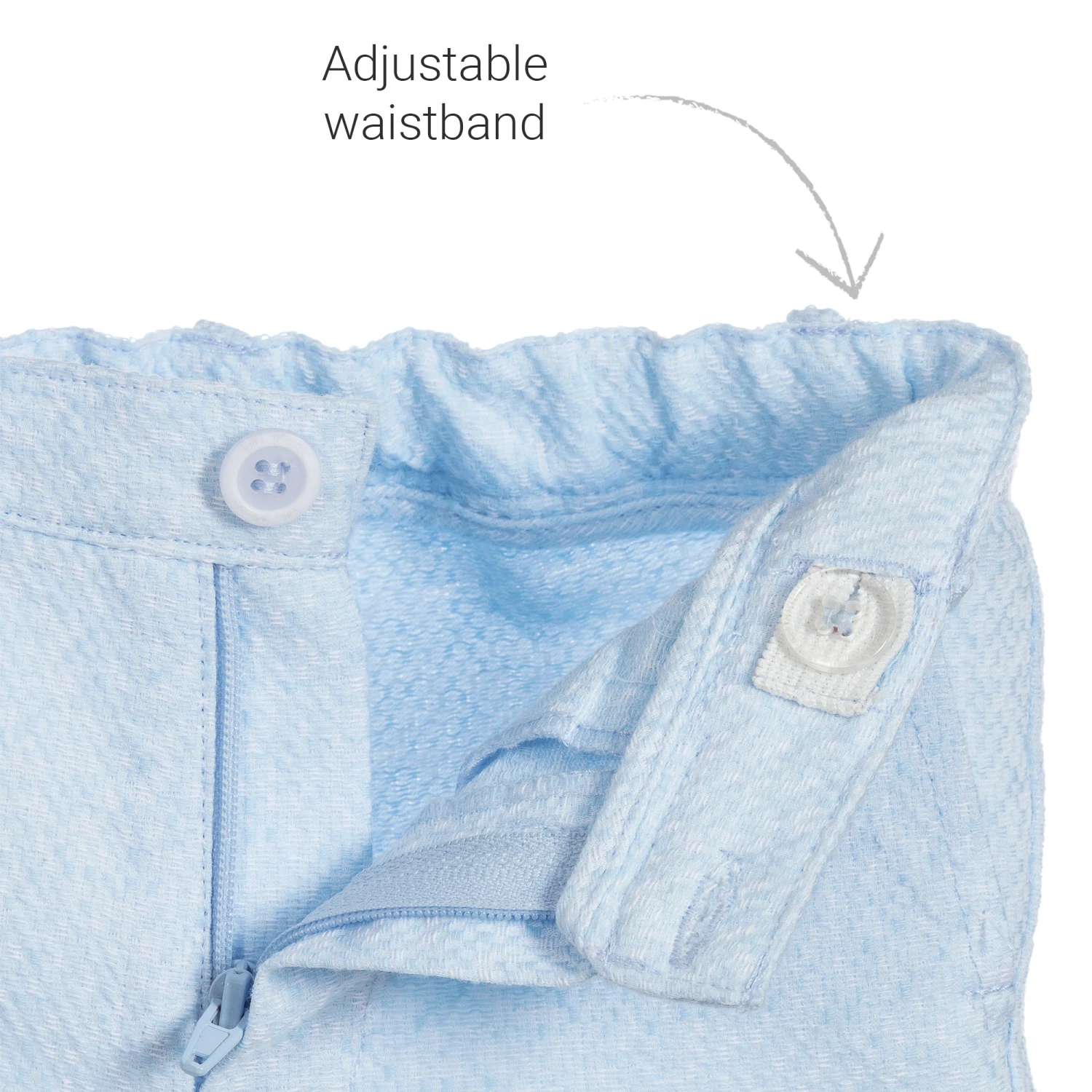 - Shorts: button & zip fastenings on front